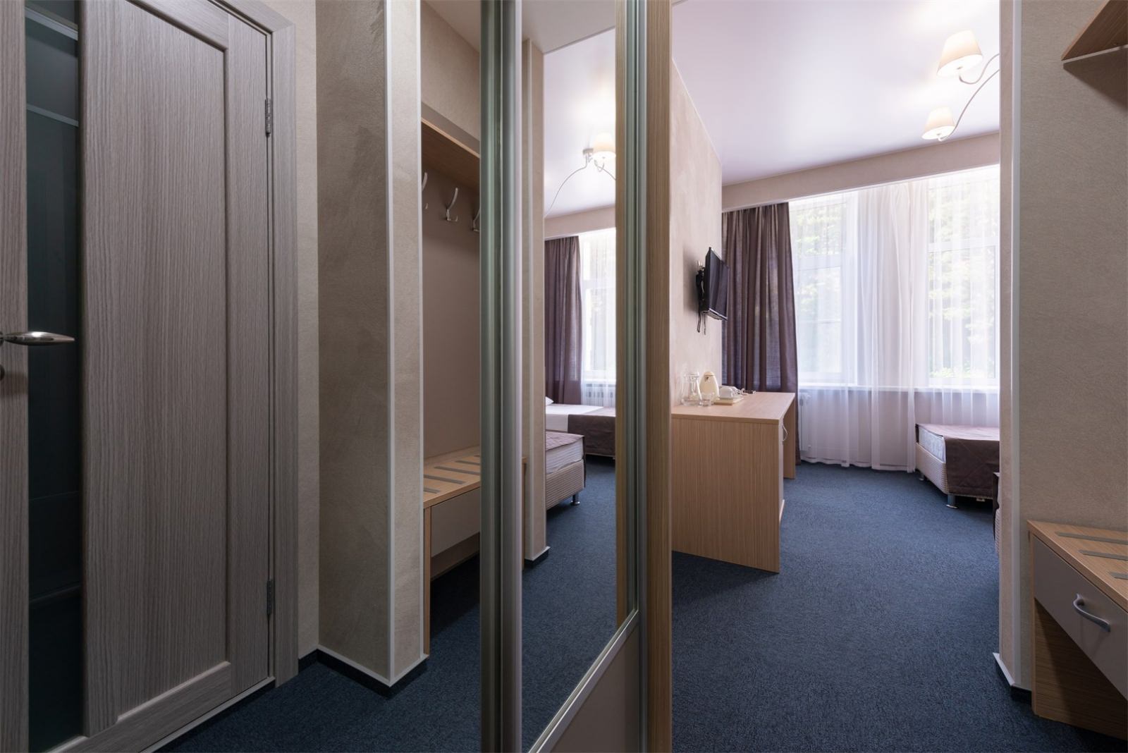 ТВИН ПЛЮС, ДАБЛ ПЛЮС Основных мест: 2 Дополнительных мест: 1 (евро-раскладушка) Площадь: 20 м2 Двухместный «Твин+» Номер, в котором возможно размещение двух человек на двух отдельно стоящих кроватях, либо на одной общей (по вашему желанию сдвинем). Номер с современной мебелью, проведен капитальный ремонт.